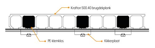 krafton® offers a broad range of different fasteners. The fasteners are an essential, but unfortunately often forgotten, component for the connection between the bridge decking plank and the support structure. That is why krafton® has invested in the development and certification of 12 methods that make krafton® unique in the European market.
