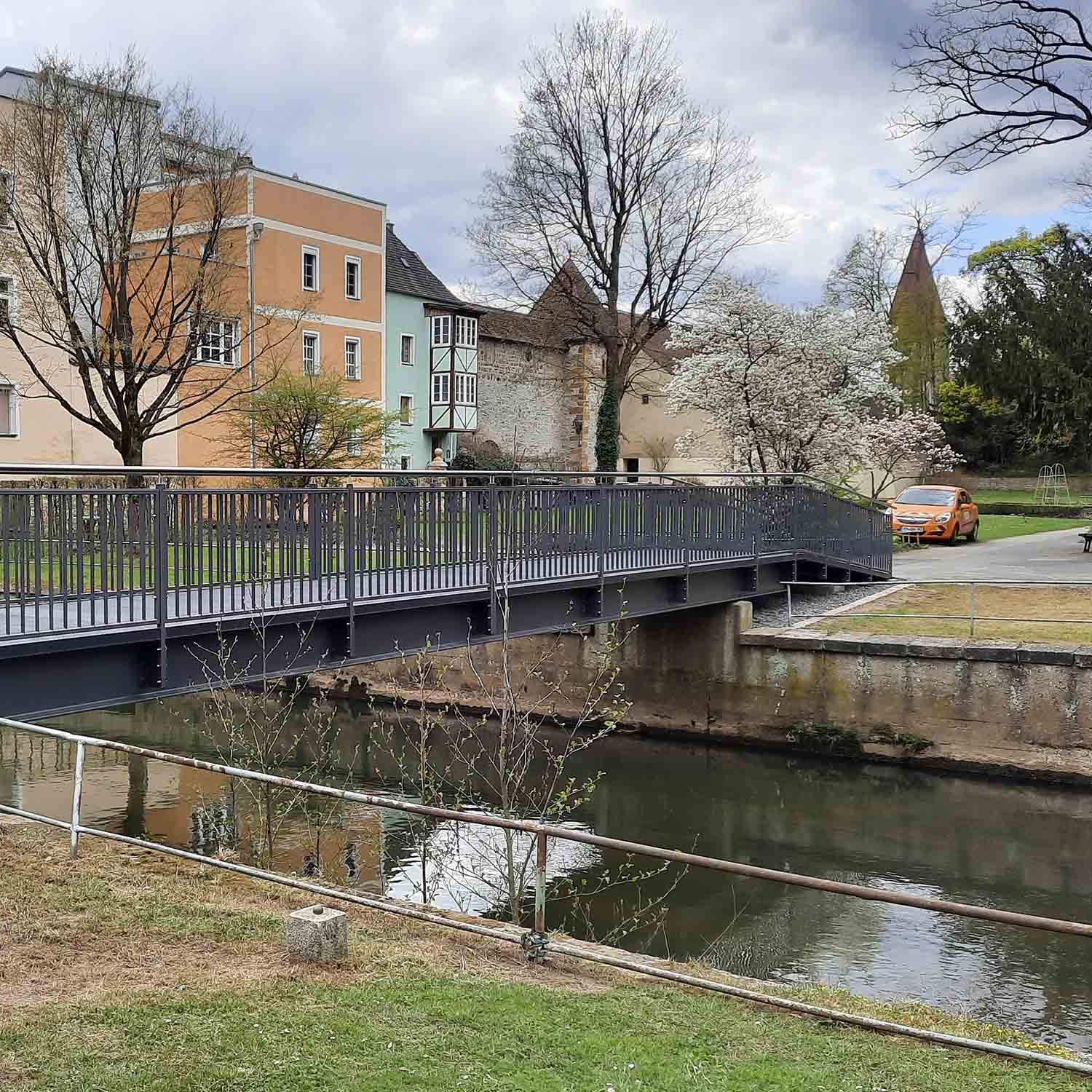 De oude voetgangersbrug, die tevens werd gebruikt als fietsbrug, bij de ‘Englischen Garten’ in Amberg was hevig aan vervanging toe. Weersinvloeden, ouderdom en intensief gebruik maakten de oude brug onveilig. De stad Amberg maakte met het plaatsen van een GVK Brugdek een duurzame keuze voor de vervanging. Naast dat het vervangende GVK Brugdek op de oude staalconstructie is gemonteerd, is de brug ook extra in de bodem verankerd. Het GVK Brugdek blijft zo met gemak bij hoogwater en overstromingen op de stalen constructie liggen. Daarnaast is de brug breder dan de oude brug waardoor voetgangers en fietsers elkaar veilig kunnen passeren.