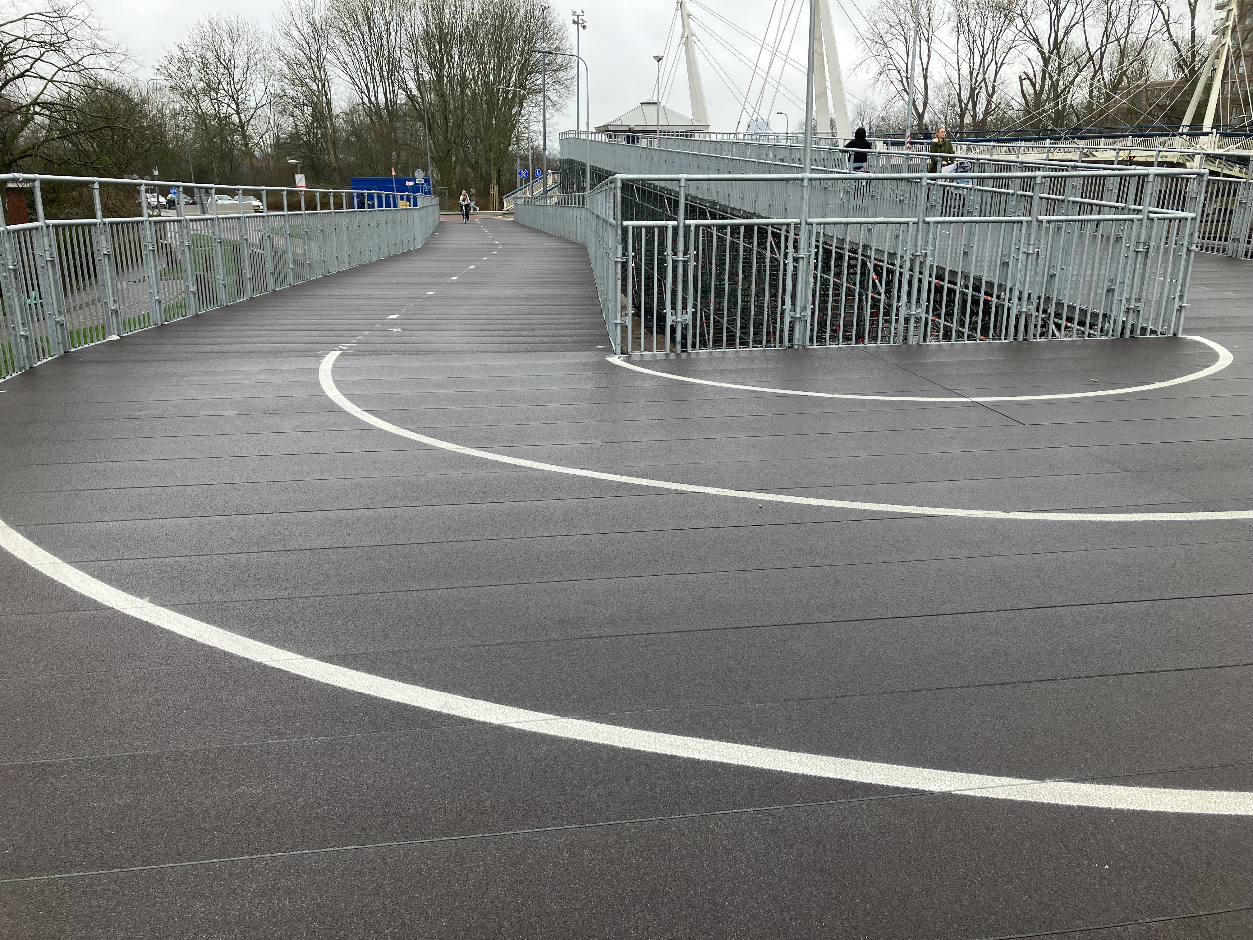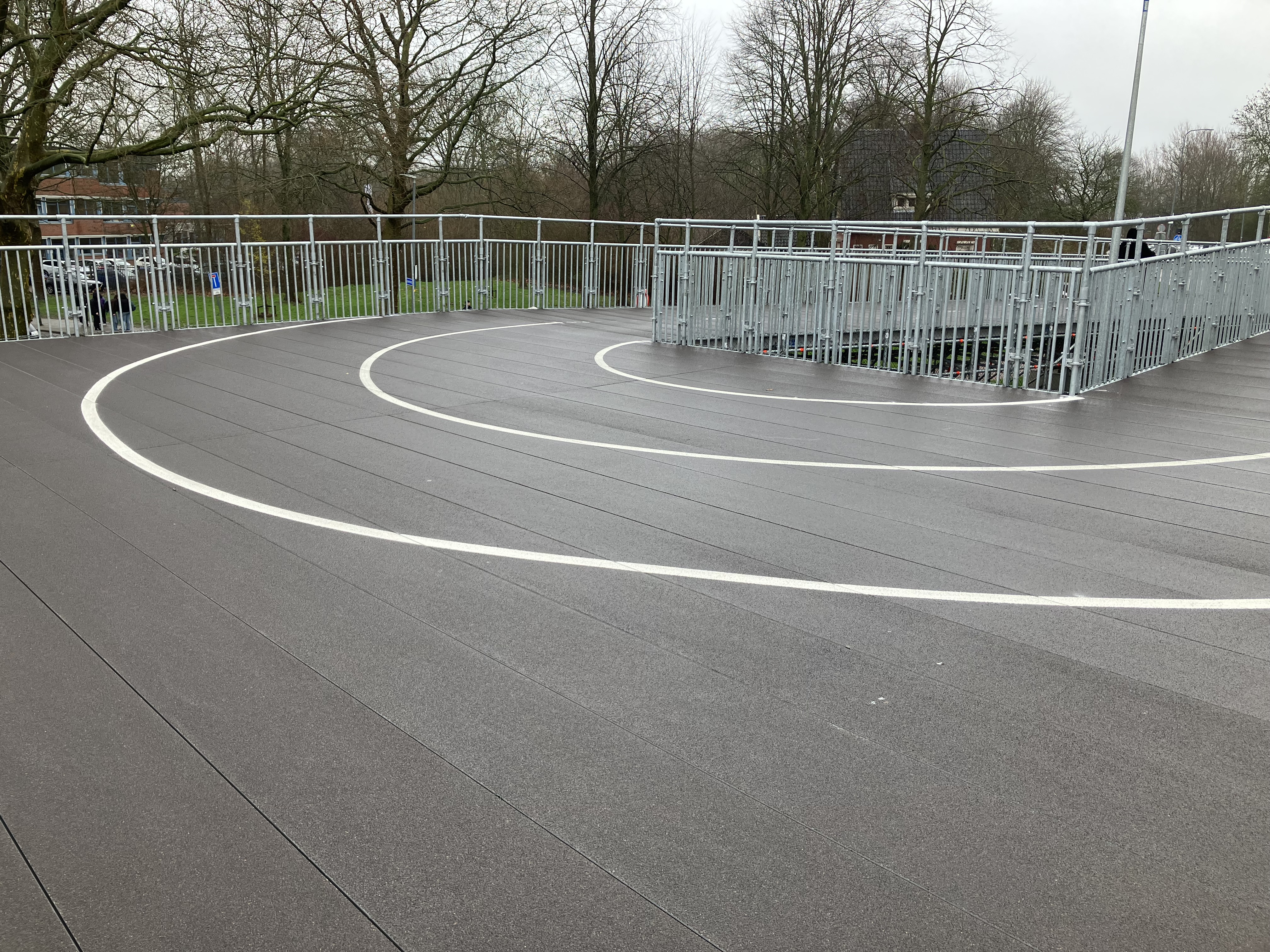 Stageco Nederland B.V. heeft een prachtige schans gebouwd met behulp van onze krafton® brugdekplank 500.40. De schans bied een veilige oversteek van een belangrijke en drukke fietsverbinding waar dagelijks zo’n 16.000 fietsers passeren. Door de aanleg in een zigzagvorm is de helling niet te stijl en goed te gebruiken voor fietsers en mensen die minder mobiel zijn. De slijtlaag bied een stroef fietsoppervlakte, die zelfs stroef blijft als deze nat wordt van de regen.